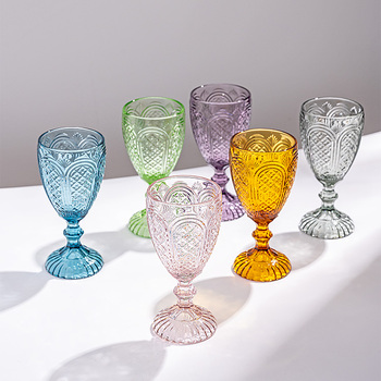 Copa de vino Vintage, diseño en relieve, cristalería, máquina prensada, vidrio prensado, copas de vino de color, copa de agua tallada