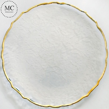 13 pulgadas oro cristal cargador placas boda con borde dorado al por mayor